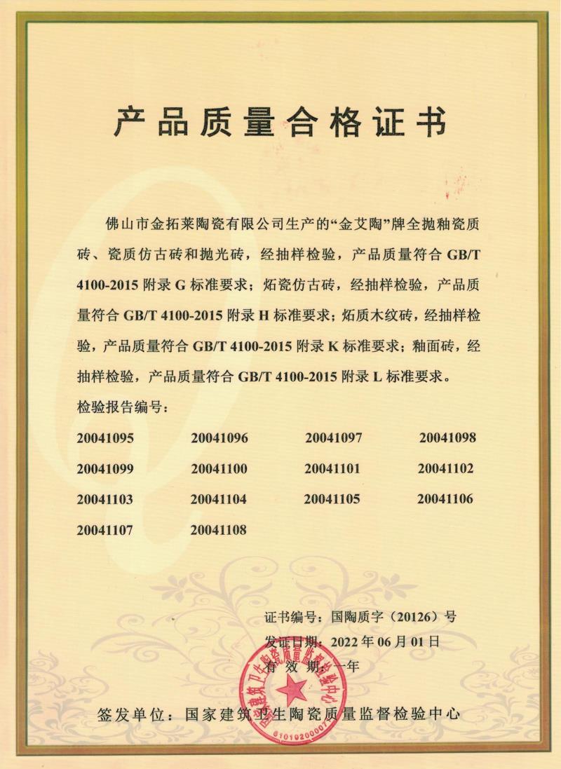 產品質量合格證書