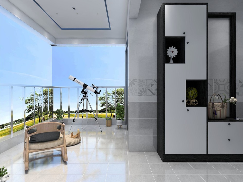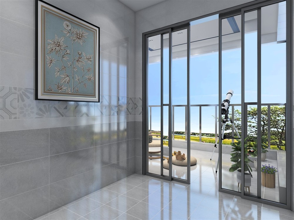 陽臺鋪貼的磚與廚房一致,淺灰色瓷磚打造質(zhì)感空間同時也可以作為鋪色突出綠植的勃勃生機,營造自然愜意的空間。
