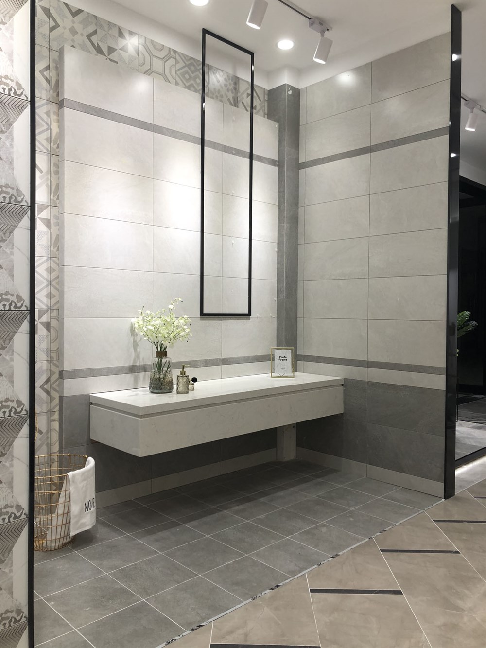 這是由緞光釉保加利亞灰鋪貼的衛(wèi)生間,私密性極好的一款磚,低調(diào)大氣,上墻下地都能鋪,現(xiàn)代簡約風(fēng)和輕奢風(fēng)都十分適用。