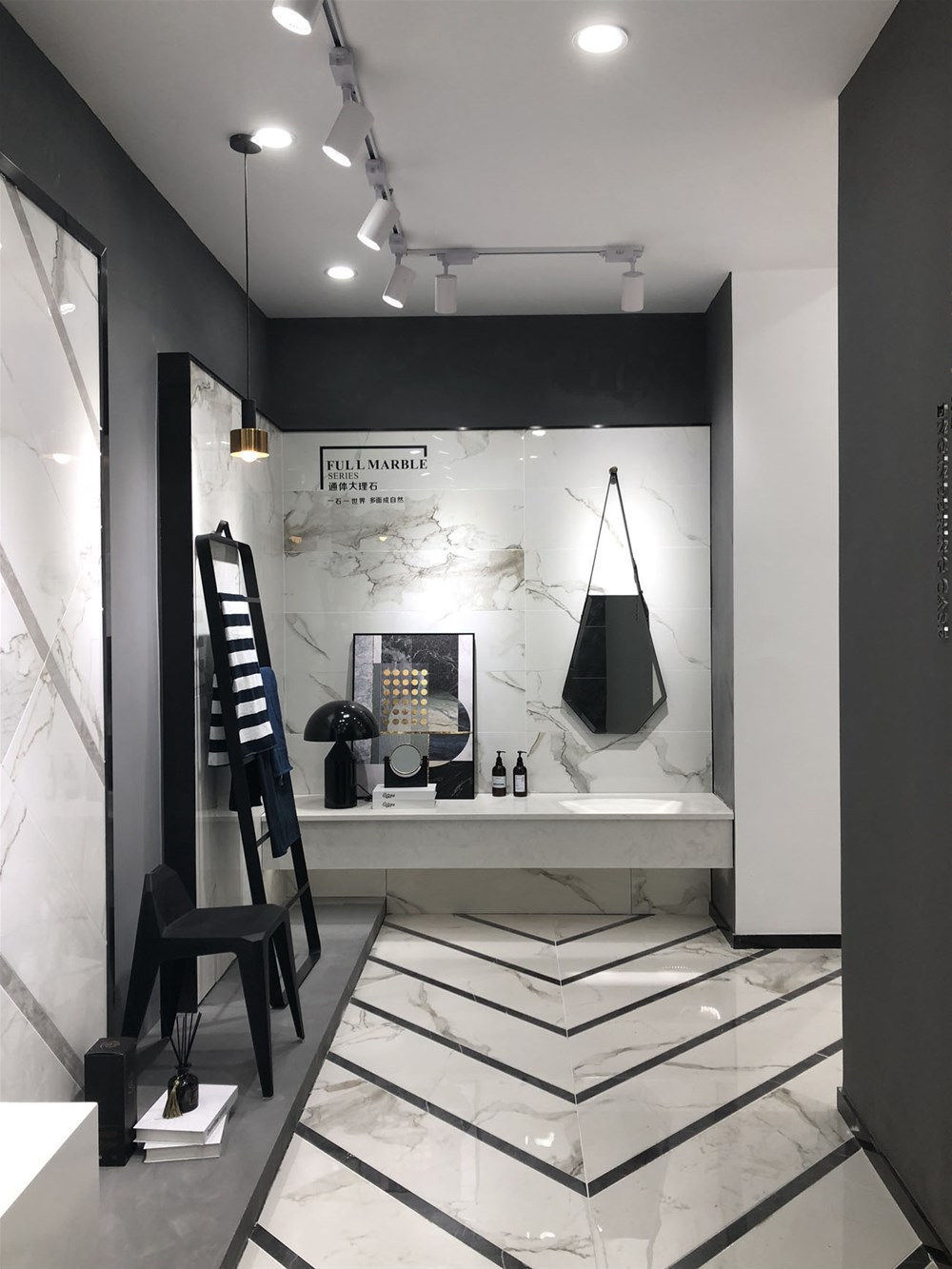 這款產(chǎn)品可作電視背景墻、客廳地磚、商場地磚、酒店大堂用磚都非常顯大氣。
