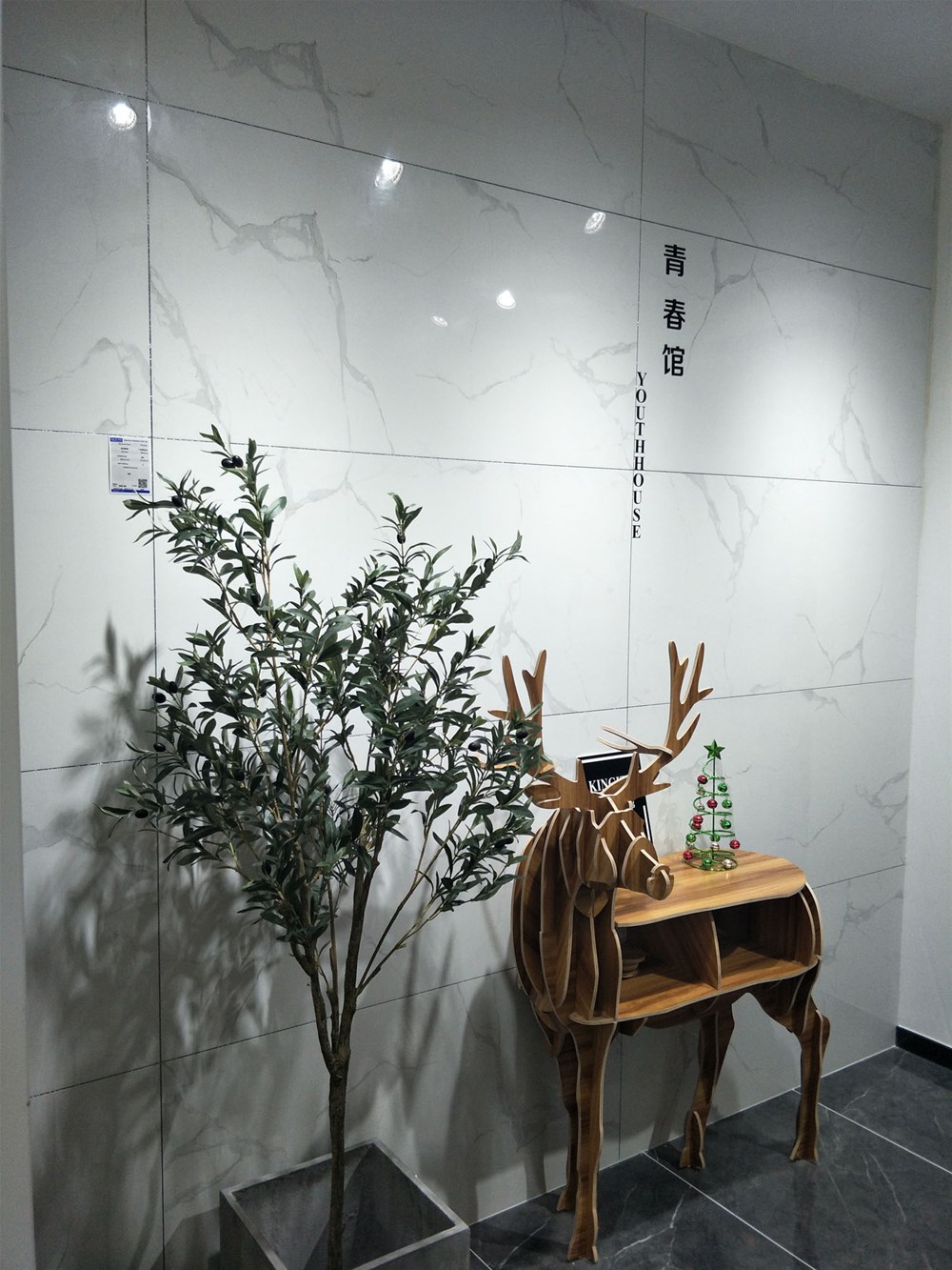 我們繼續往下看,這是由九面通體大理石KA9M61205雅士白鋪貼的商場的一角,也適用于陽臺、花園等空間,600*1200規格直鋪是不是大氣又不失優雅,再者是大紋理的點綴,小空間切割鋪貼同樣適用哦。