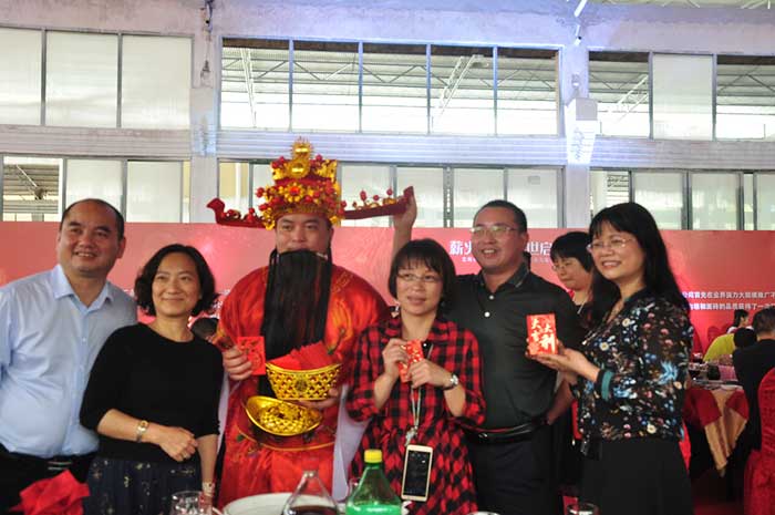 當天,活動現場還舉行了隆重的點睛儀式和剪彩儀式。董事長劉鴻祥和總經理劉鴻興共同為祥獅點晴,寓意吉祥。緊接著,他們和藤縣人民政府副縣長楊正沛、梧州市工信委副主任陳劍廷、梧州市投資促進副局長李月英、江西陶瓷工藝美院廣東校友會會長吳桂周拿起金剪共同完成了剪彩儀式,寓意紅紅火火。在場1000多名來賓共同見證了這歷史性的精彩時刻。
