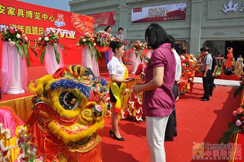 醒獅點睛,預示著金艾陶惠州旗艦店開業大吉,生意興隆!