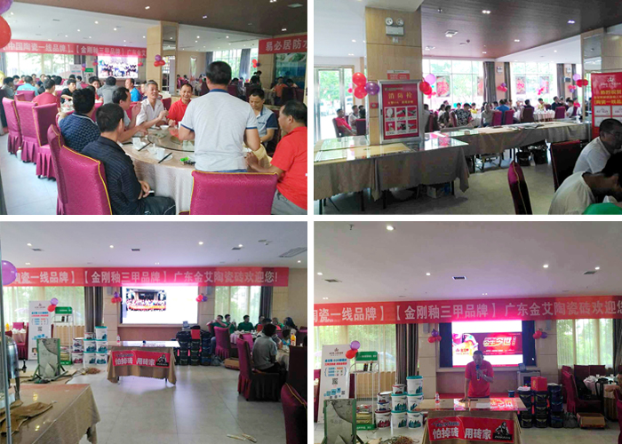 據悉,本次推介會主辦方井岡山金艾陶瓷磚專賣店老板尹慧華尹總,是2014年才轉行做陶瓷的,他的眼光高遠,對于金艾陶瓷磚產品的宣傳、推廣有自己的一套方式。他不僅僅是經營瓷磚,還兼顧著裝修所需要的耗材,如填縫劑、膠水等等,裝修耗材品種配套齊全從而得到客戶的青睞!