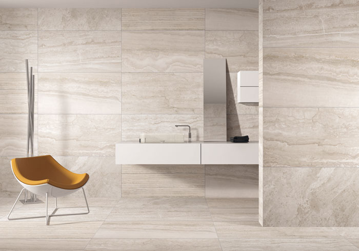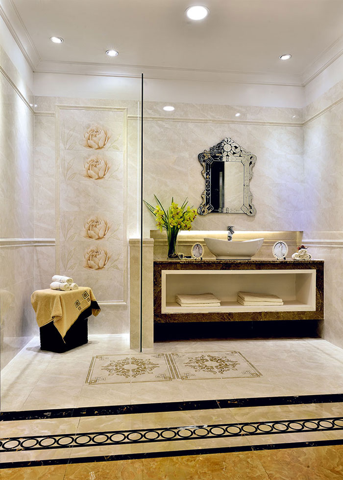 選擇啞光面或具有砂巖質感、凹凸紋理的仿古磚,無疑是做好衛生間防滑的最好準備。