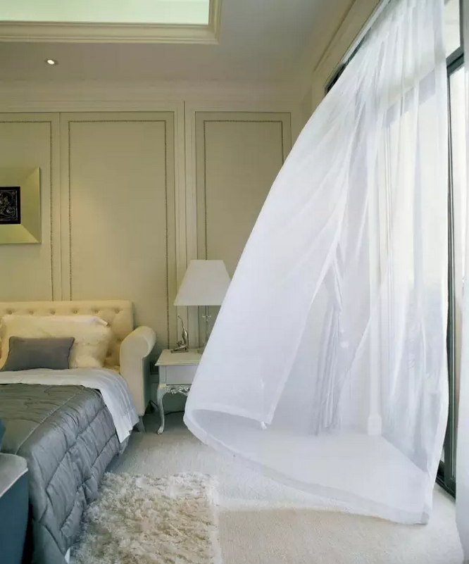 朝南的窗戶光線好,薄紗、薄棉或絲質的布料比較合適,朝北的房間,比較陰冷灰暗,要考慮保溫功能。