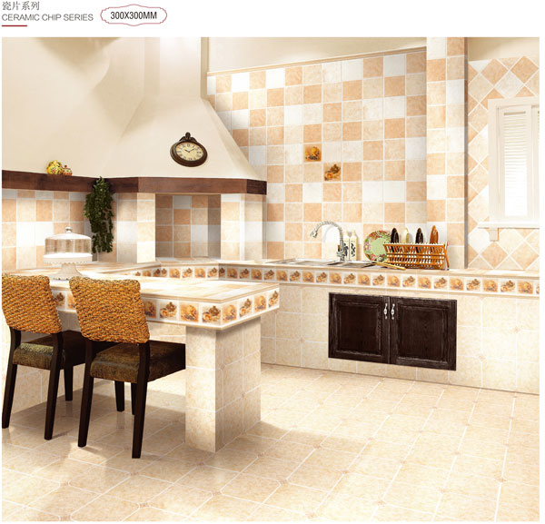 廚房瓷磚有多種材質,分為釉面磚、通體磚、拋光磚、玻化磚、馬賽克等幾大類。在廚房等面積大一些的空間里,墻面瓷磚首選的是光滑或啞光釉面磚,清潔起來非常方便,還可以制造“時尚”的效果。地面瓷磚材質則最好選擇啞光面即防滑地磚,以防止廚房的湯湯水水讓地面過滑,一不小心造成安全問題。
