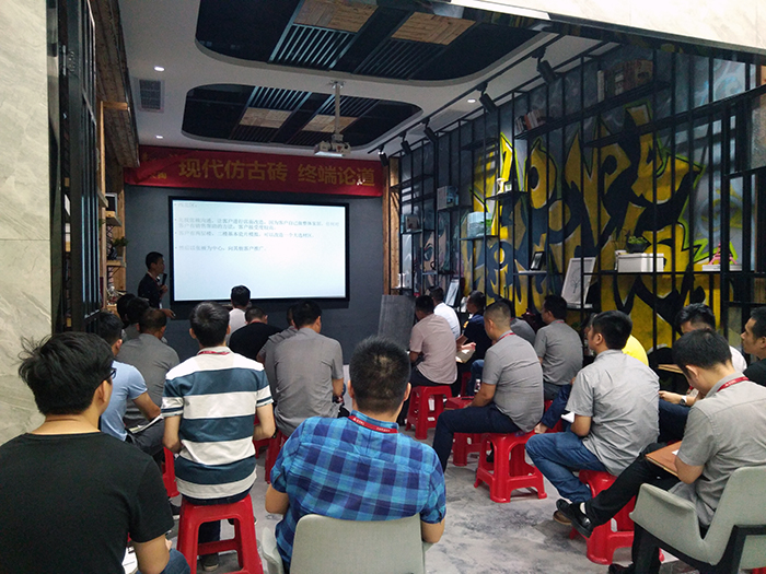 “工欲善其事,比先利其器”,為提高銷售人員業務能力與專業知識,進一步傳播陶瓷一線品牌金艾陶現代仿古磚新品的推廣,2017年9月2日下午,金艾陶商學院第三期銷售精英演講大賽于金艾陶華夏展廳一樓拉開帷幕。