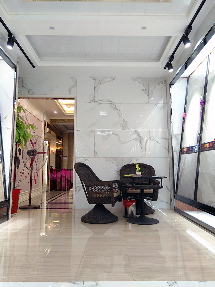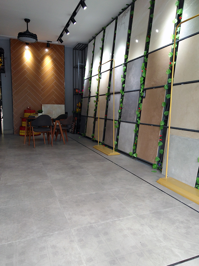 物料的裝飾會給瓷磚店添加幾分活力,門口掛著的牌匾又為品牌實力增加了分量。