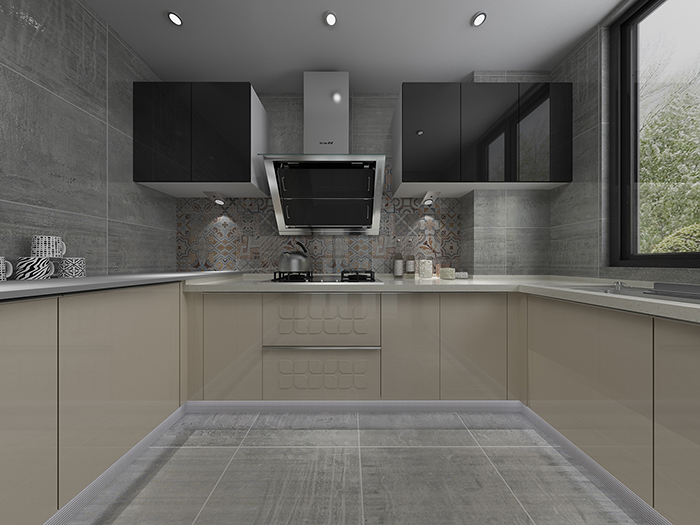 紋理簡單的現(xiàn)代仿古磚,切割方便,以混鋪方式加入花磚等不同的元素,勾勒一個跳躍、靈動的視覺空間,絕不會讓人覺得乏味。