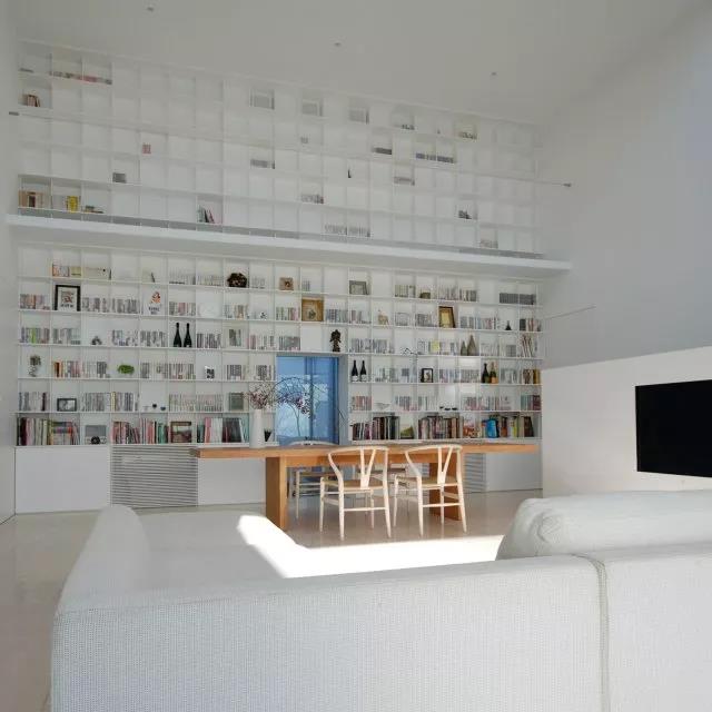 房頂高的屋子大氣舒適,將書柜一直延伸至房頂,適合存書量非常多家庭,當(dāng)然存放一些影碟或者紅酒也是不錯(cuò)的。