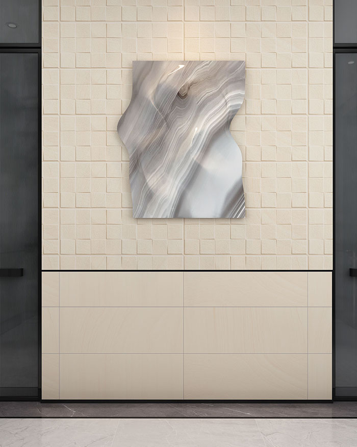 擁有灰色調(diào),深度還原天然石材,白色紋理錯落有致的分布其中,靜謐而靈動,紋理流暢和豐富,完美呈現(xiàn)出天然石材的自然色澤和高貴氣質(zhì)。