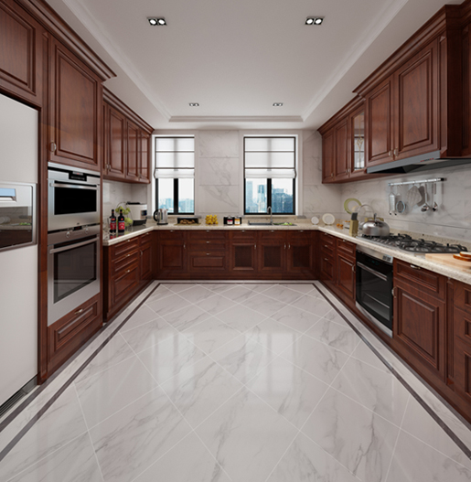 主要材料:壁紙、木制品、現(xiàn)代仿古磚15°緞光釉