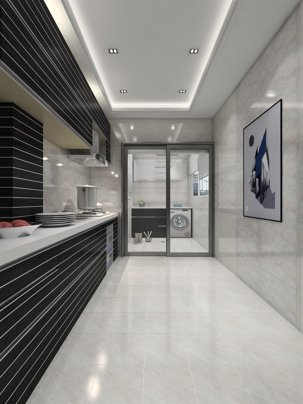 白色與黑色的櫥柜搭配出空間的層次感,
